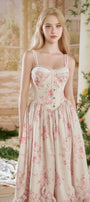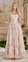 Aurora A-line Ruffle Trim Cotton Silk Maxi Dress