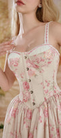 Corset design, Gathered waist, Ruffle trim along lower part of bottom