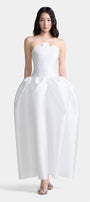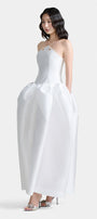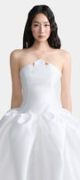 Corset tie back, Puffed hem, Pearl decoration, Pointed front flap