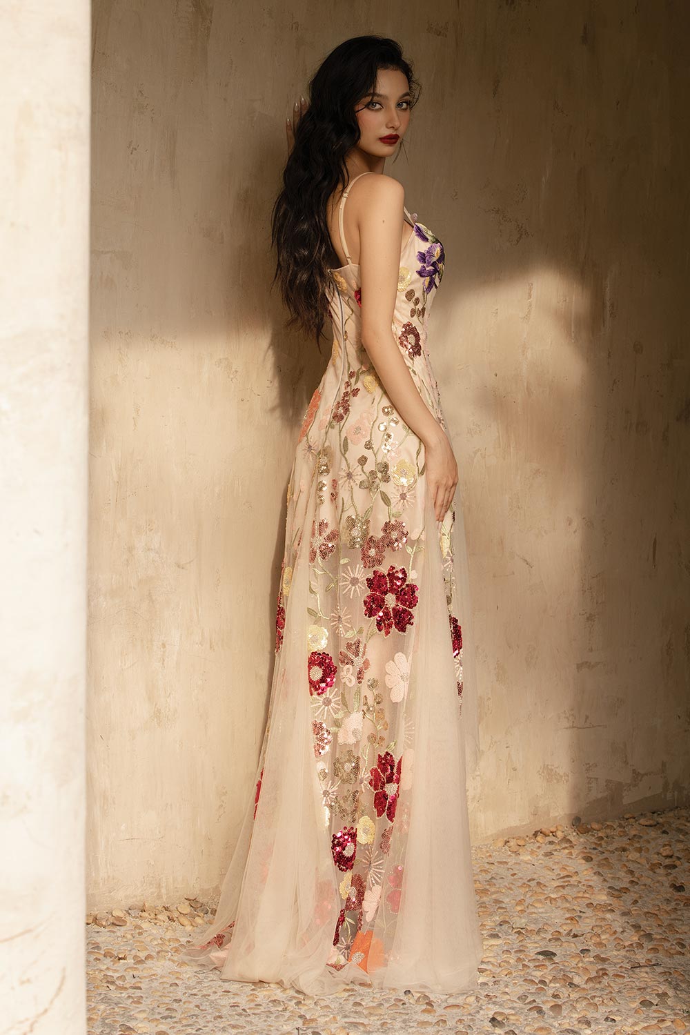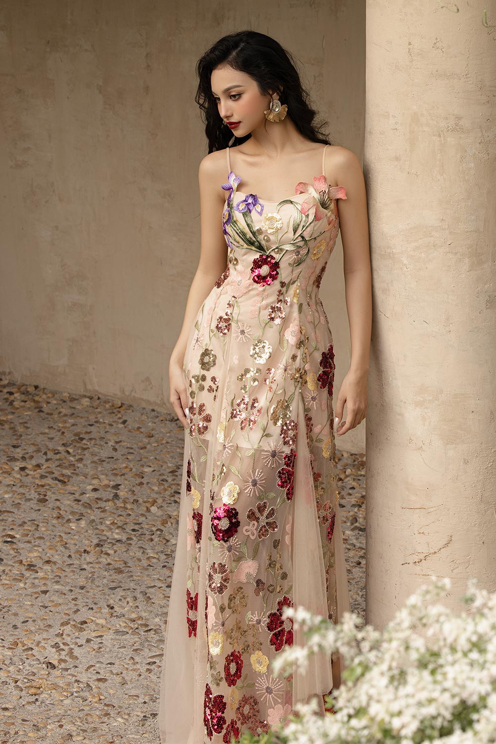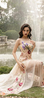 Special Features: Attached flower applique, Corset lacing at the back, Padded bust