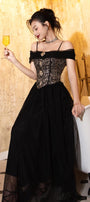 This dress combines functionality and style with a flattering A-line shape and a gathered mesh material. Made with quality craftsmanship and superior fabrics, this dress creates a timeless and elegant look perfect for any occasion. Feel confident and beautiful while wearing this stunning maxi dress.
