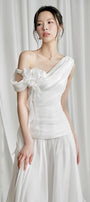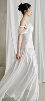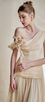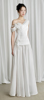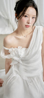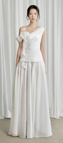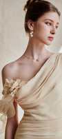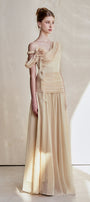 Venus Gathered Asymmetric Neck Silk Chiffon Floor Length Dress