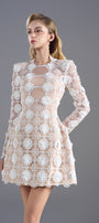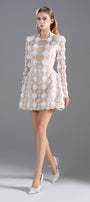 Expertly crafted, this A-line mini dress features a classic round neck, regular sleeves, and elegant applique embellishment. Its timeless silhouette offers effortless sophistication, perfect for parties, casual outings, or semi-formal events.