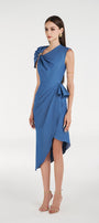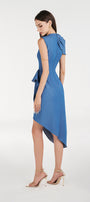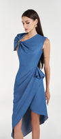 Audra Wrap Asymmetric Sleeved Denim Knee-length Dress