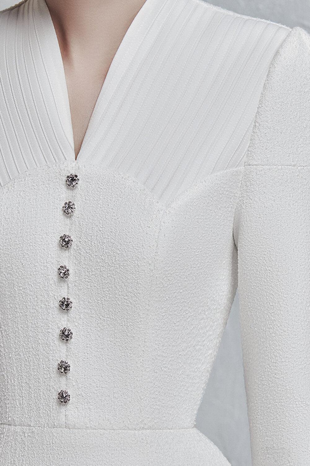 يبدو الفستان مثيرا للإعجاب بأكمام طويلة وتصميم لطيف خلق مظهرا جديدا تماما لمرتديه يجلب الأناقة والشباب.
