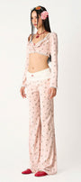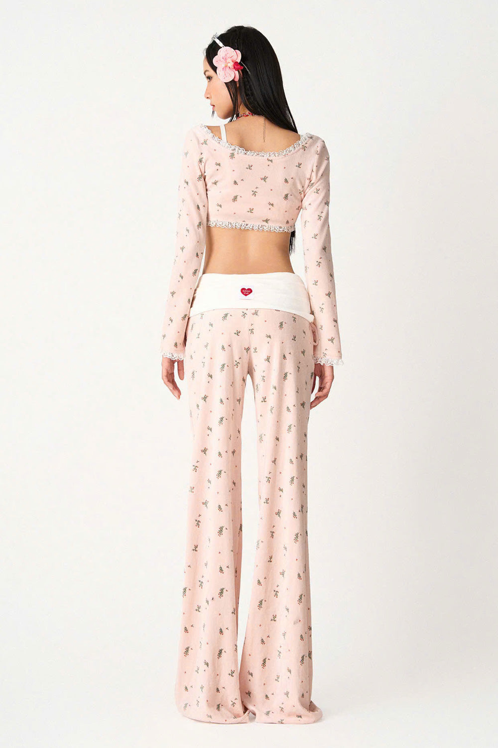 The top features a sleek, figure-hugging fit enhanced by delicate ruffle trim accents that add a touch of femininity and movement. Crafted from stretchy spandex, it ensures comfortable wear and excellent shape retention. Its cropped length pairs seamlessly with high-waisted styles, making it a versatile piece for creating polished, contemporary outfits.