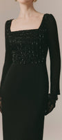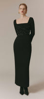 Starlight Sheath Back Slit Poly Silk Ankle Length Dress