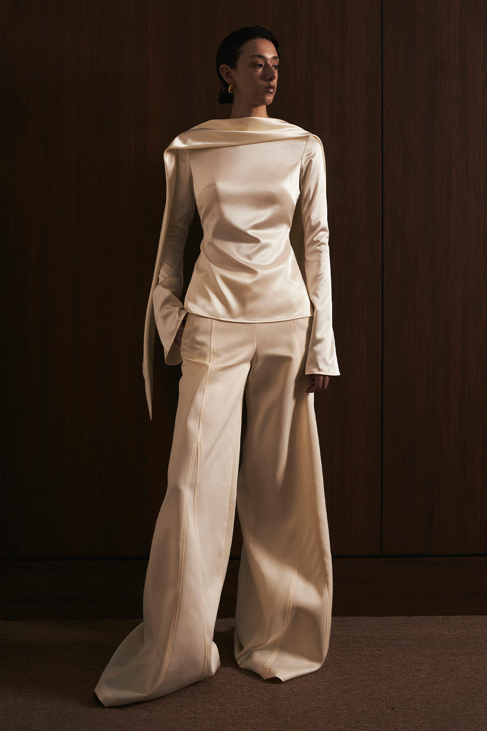 Expertly crafted from luxurious silk shantung, the top offers effortless elegance for any occasion. With a sleek and sophisticated design, this top is both comfortable and stylish, perfect for showcasing your refined taste and impeccable style. Elevate your wardrobe with this timeless piece.