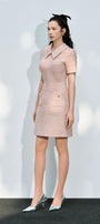 Crafted from high-quality tweed fabric, the dress offers a sophisticated A-line silhouette and functional patch pockets. Its timeless design and luxurious material make it a versatile choice for any occasion. Elevate your wardrobe with this elegant and practical dress.
