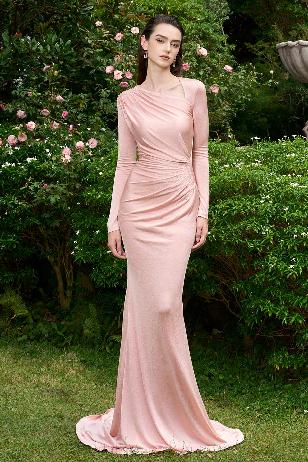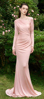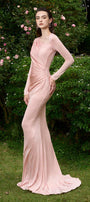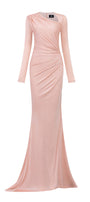 Alaina Mermaid Diagonal Neck Jersey Extra Long Length Dress