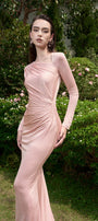 This dress features a stunning mermaid diagonal neckline, perfect for any formal occasion. Made with high-quality jersey fabric, it offers a flattering and comfortable fit. Stand out in style with this expertly designed dress.