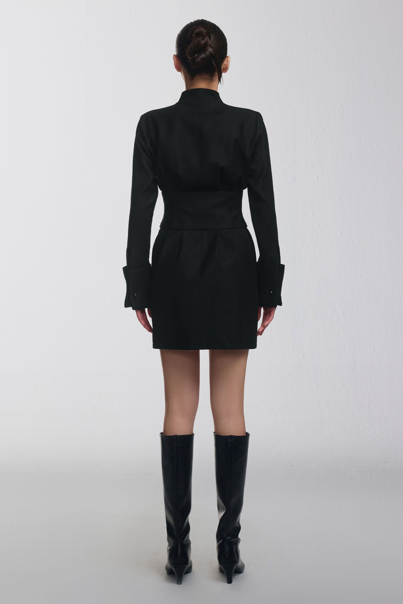 Showcase timeless style with this sheath mini dress, crafted from premium polycotton for comfort and polish. The high neck and cuff sleeves create a refined silhouette, perfect for business events, evening gatherings, or upscale parties.