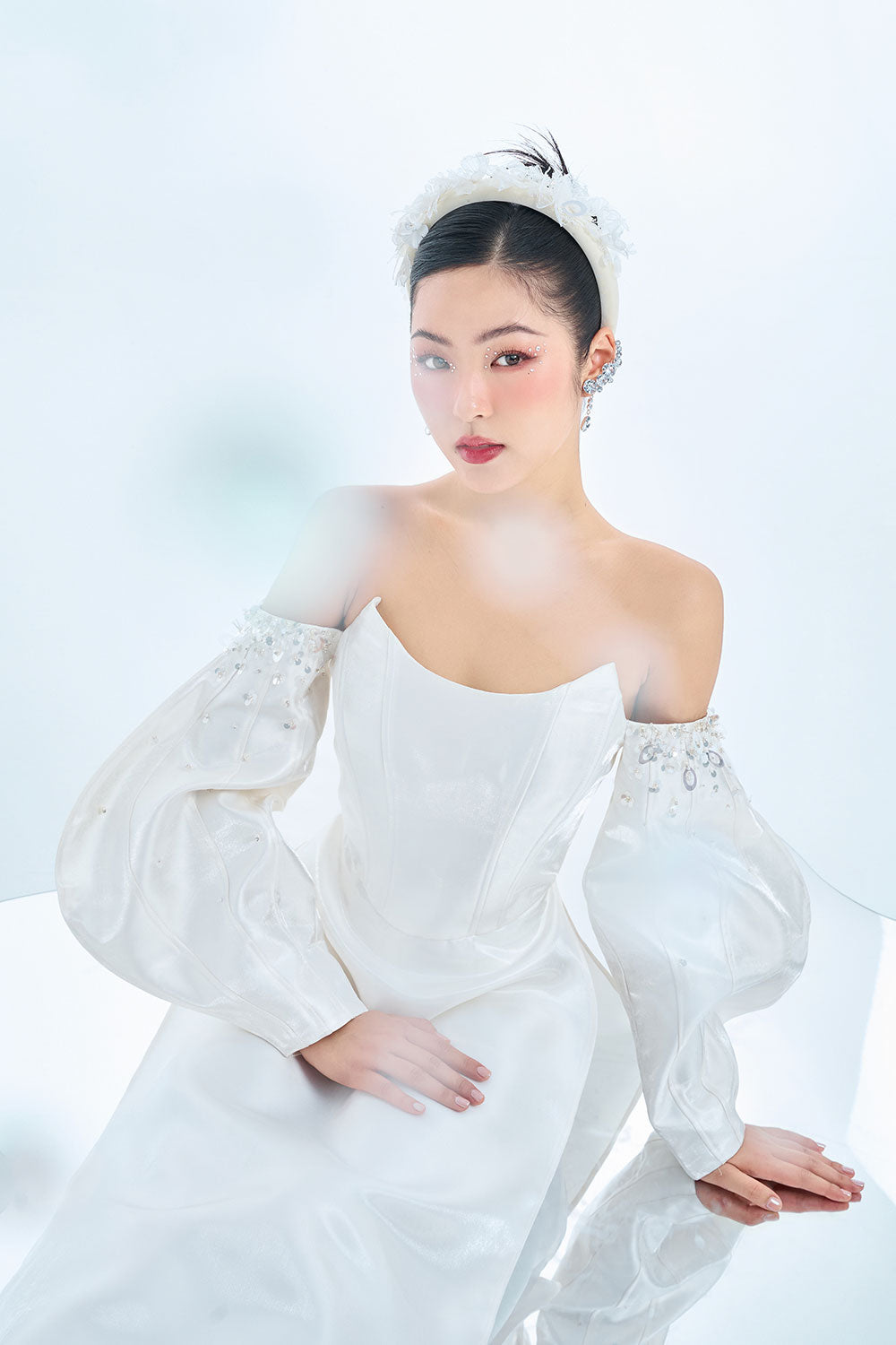 Athena A-line Off-Shoulder Taffeta Floor Length Ao Dai Set