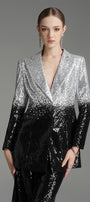 Notch lapel, Padded shoulder, Attaching handcrafted ombre sequins