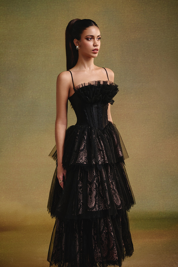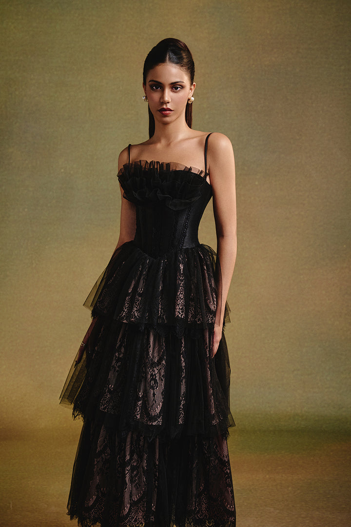 Opera By Night A-line Ruffle Midi Dress - MEAN BLVD