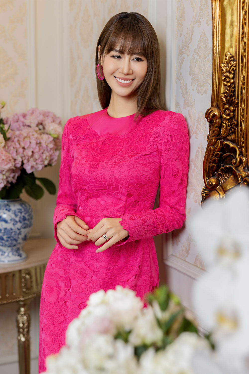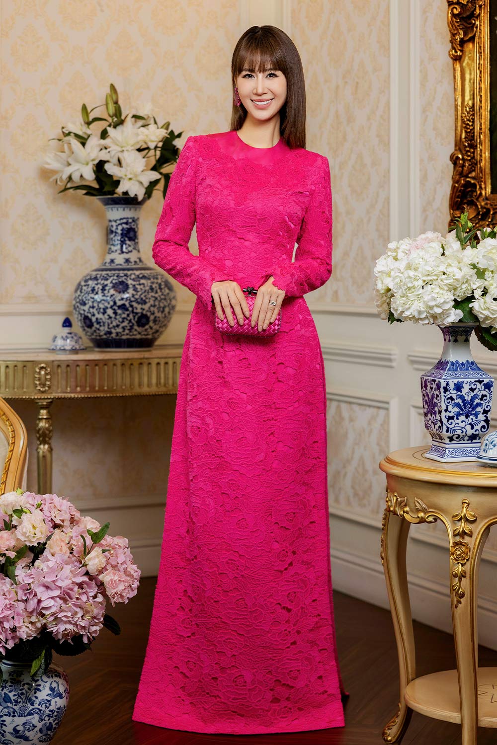 This Ao Dai provides an elegant and sophisticated look. The sheath round neck design highlights the contours of your body, while the silk lace adds a touch of femininity. With its floor length, you'll exude grace and confidence at any formal event.