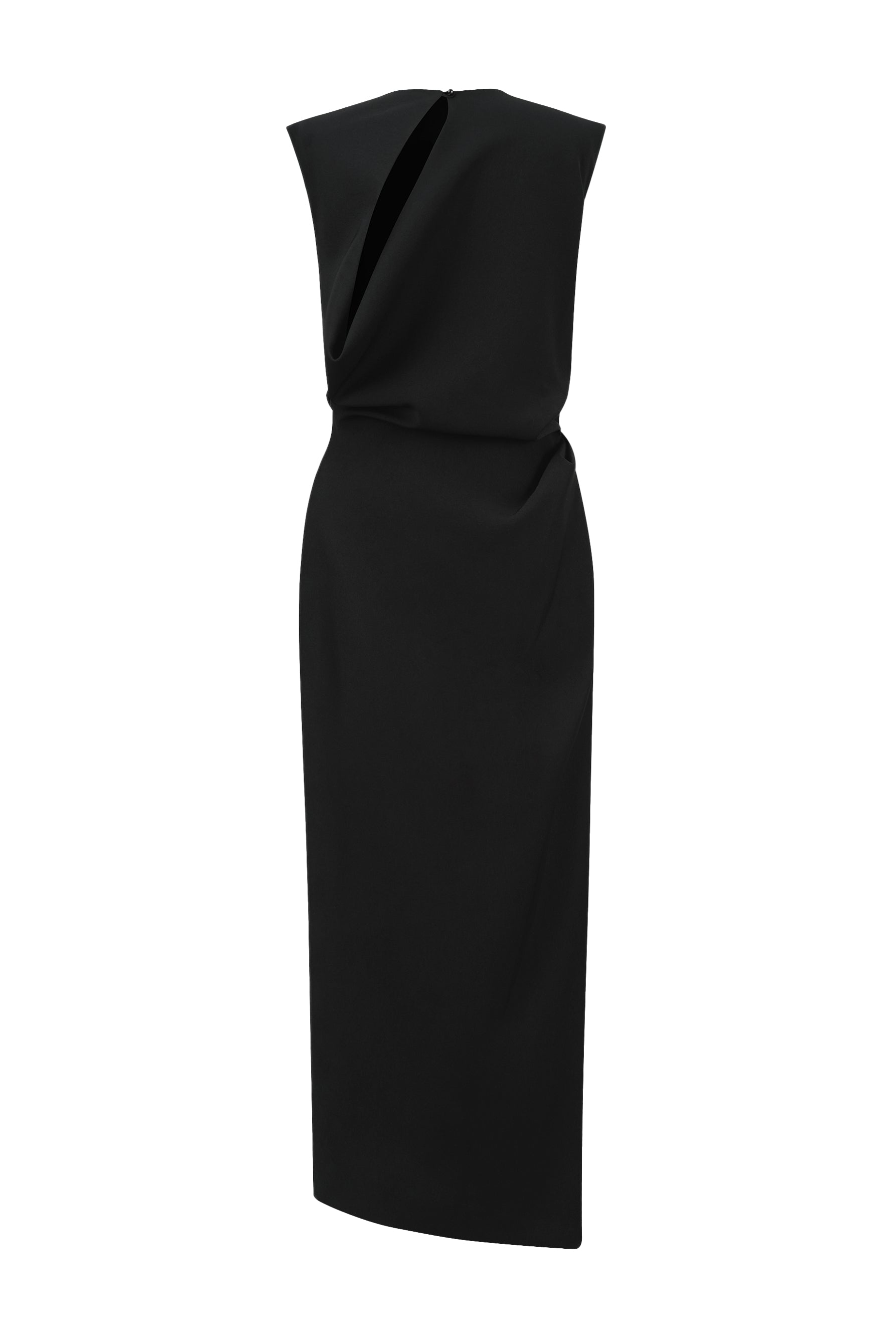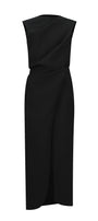 Expertly tailored from polycotton, this straight silhouette maxi dress features an asymmetric neckline and elegant draped detail. Its sophisticated design makes it ideal for formal events, evening gatherings, or upscale occasions.