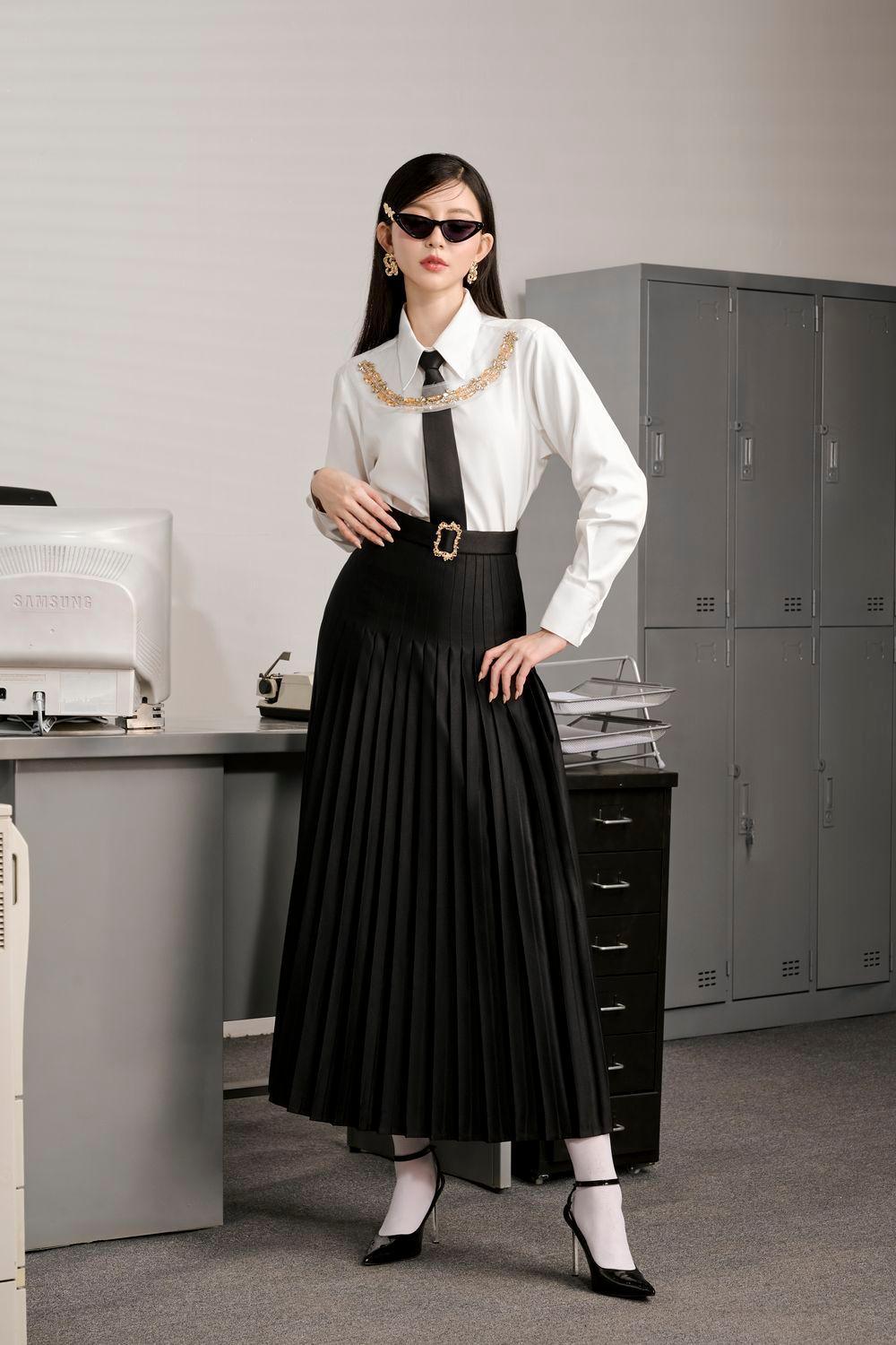 سلسلة مزينة بأحجار الراين على الصدر, خصر منسدل مطوي