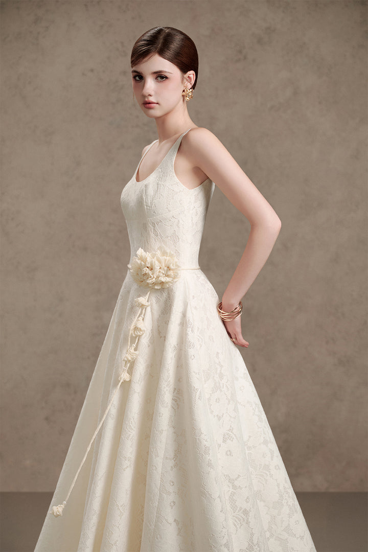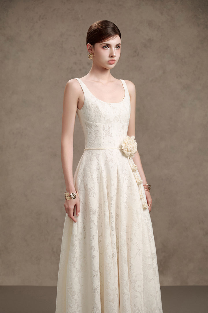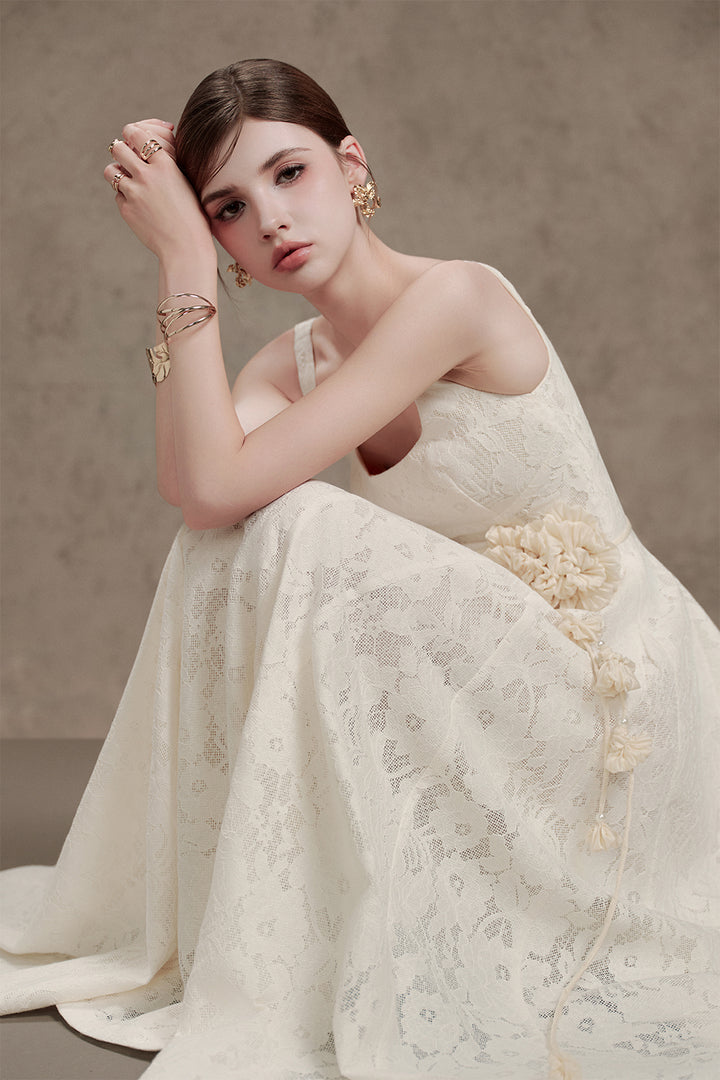 The dress combines delicate lace craftsmanship with a relaxed, flowing silhouette. Its A-line shape flatters a variety of figures, while the loose straps offer both comfort and a subtle, elegant appeal. This maxi dress is an excellent choice for formal events, providing timeless sophistication with a modern, effortless feel.