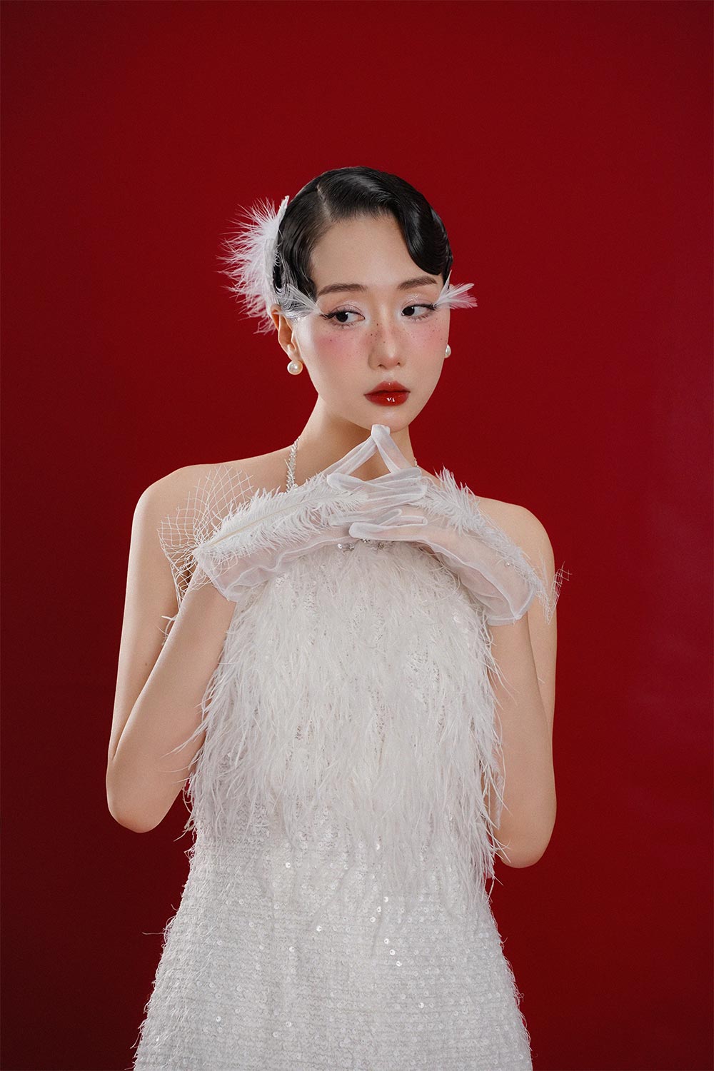 Expertly crafted with a sophisticated A-line silhouette and elegant halter neck, this Ao Dai is made from luxurious tweed material. Its floor-length design adds a touch of grace to any occasion. Perfect for those seeking a refined and timeless look.
