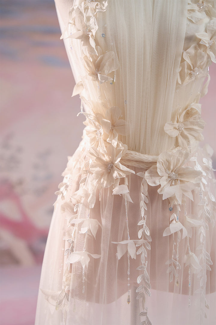 | Special Features | Embellished 3D floral and leaves on the bodies, Gathered mesh outer cover waist and skirt, Shorts lining, Fitted waist with spiga chain, Sheer effect |