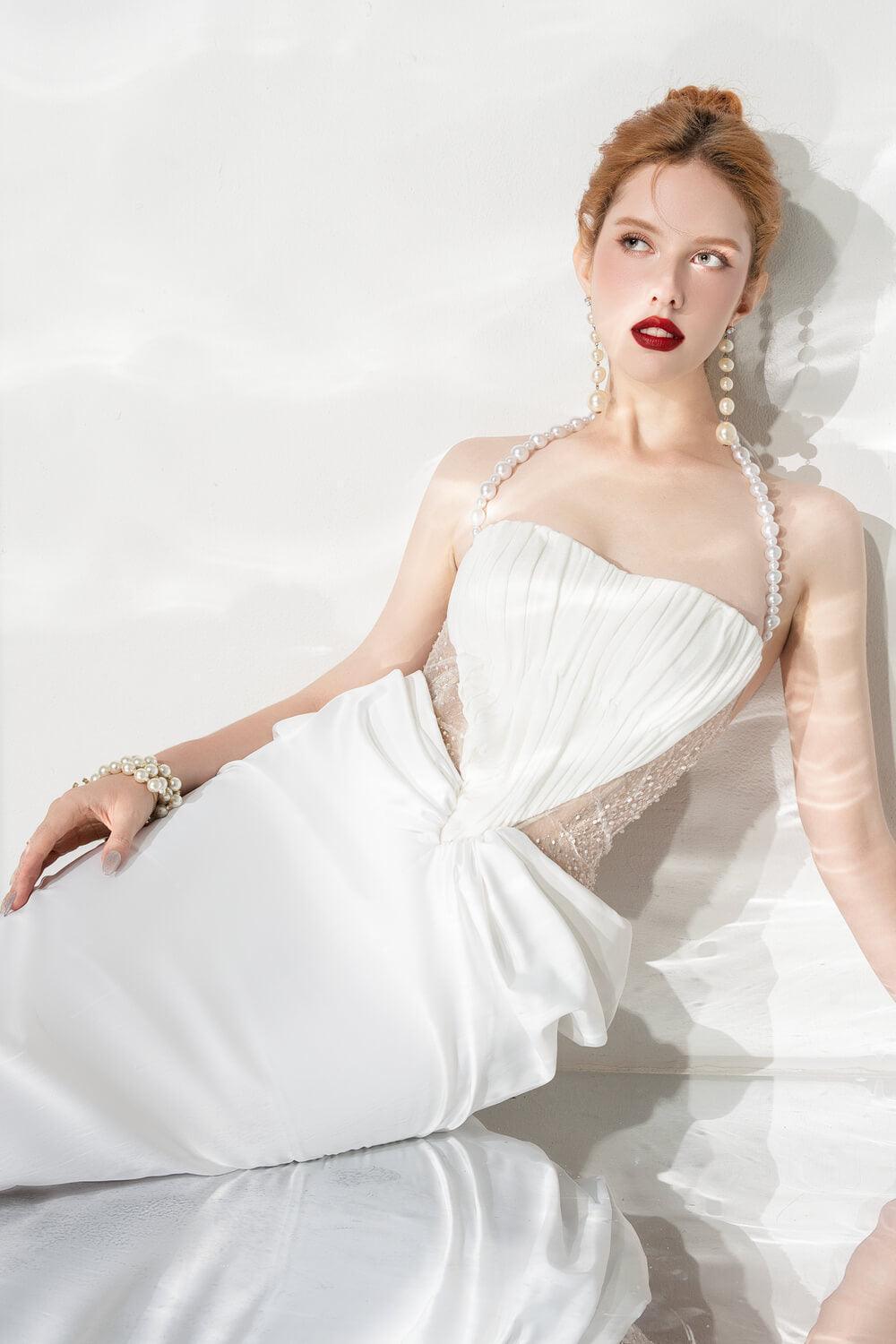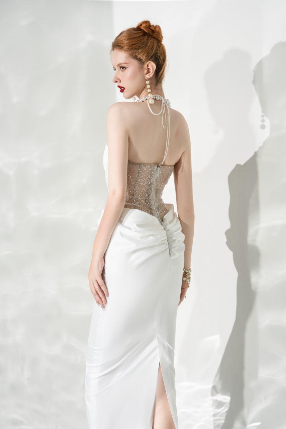 شكل قلب على الصدر, ستابل الرسن اللؤلؤ, الخصر والصدر متجمعان, شفاف من الخلف والخصر مع الخرز, نفخة الوركين