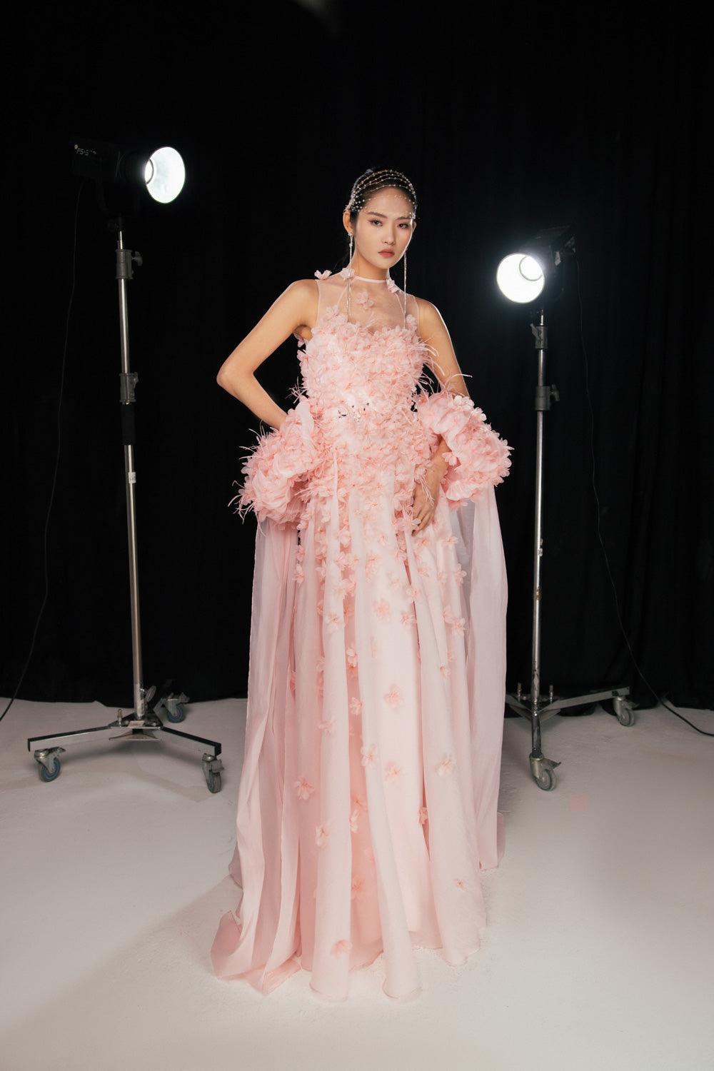 زهور وردية مصنوعة يدويا, جزء سفلي ملتف, رقبة وهمية بزهور ثلاثية الأبعاد, أكمام تشبه الشال قابلة للفصل