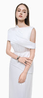 Elevate your style in this expertly crafted silk maxi dress. Its sheath silhouette, asymmetric neckline, and pleated design create a refined, modern look perfect for formal events, galas, or sophisticated evening gatherings.