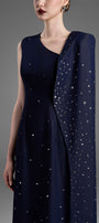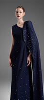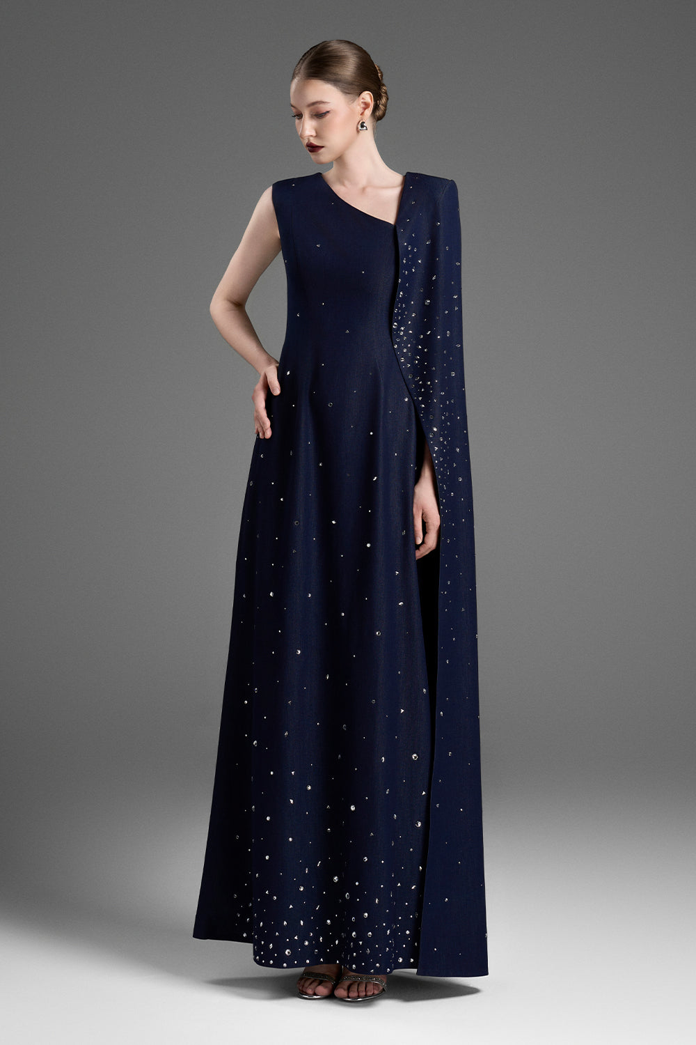 Lucia Asymmetric Neck Rhinestones Maxi Dress