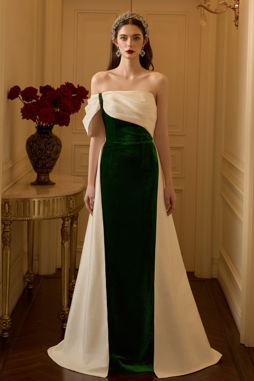 Material: Velvet (Dress), Taffeta (White)