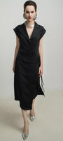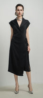 Averi Wrap Notch Lapel Polyester Midi Dress