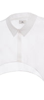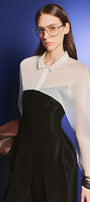 This shirt offers a stylish, cropped design and a unique organza material that adds dimension and texture. Expertly crafted, this shirt provides a professional and polished look, perfect for any modern fashionista. Elevate your wardrobe with this versatile piece.