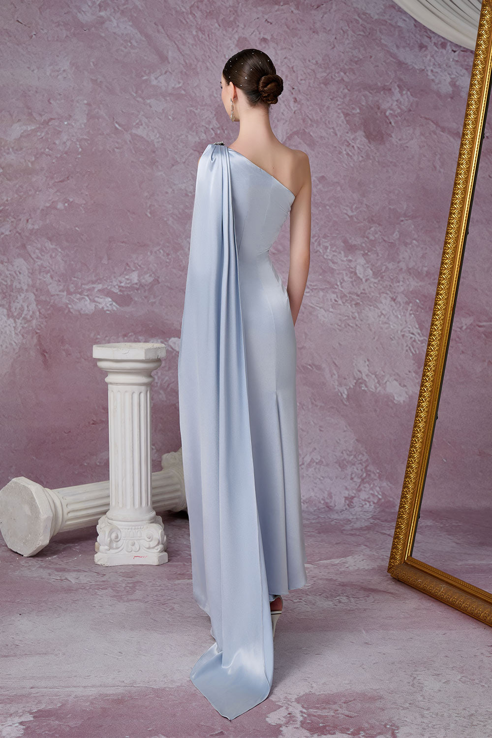 Nimbus Trumpet One Shoulder Silk Ankle Length Dress