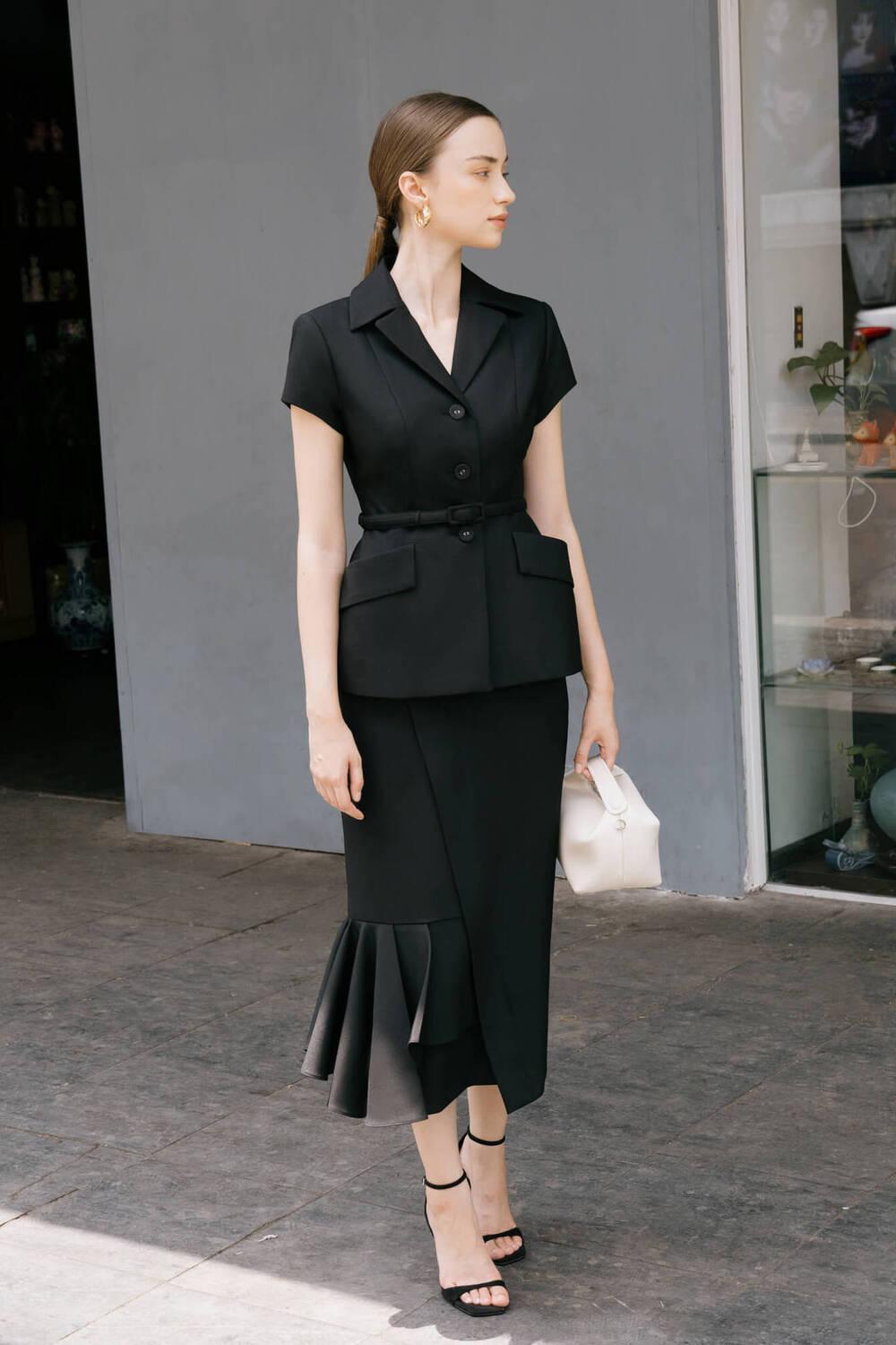 مزيج متناغم من الأناقة والأنوثة، تصميم السترة ذات الأكمام القصيرة ينضح بمظهر شبابي بأسلوب ليبرالي. يساهم قماش حرير السورة عالي الجودة في جلب الاسترخاء لمرتديه ويجعل الزي العام أكثر روعة.