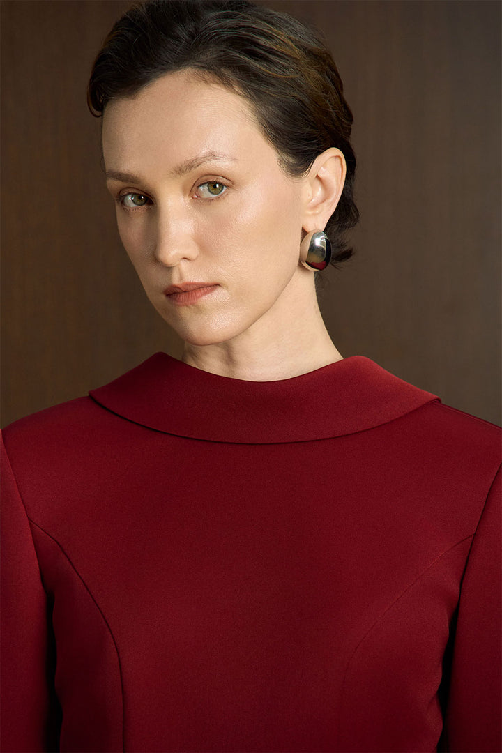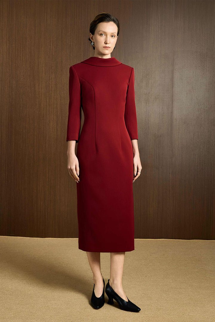 This dress is expertly crafted with quality materials for a sophisticated, polished look. The midi length and long sleeves offer versatile styling options, while the sheath silhouette flatters your figure. Perfect for any occasion, this dress exudes elegance and refinement.