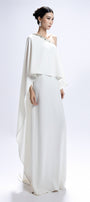 Experience refined sophistication with this straight silhouette maxi dress, crafted from luxurious synthetic silk. The one-shoulder neckline, accented by a dramatic cape sleeve and exquisite bead embellishments, radiates elegance. Perfect for gala dinners, weddings, or upscale evening events.