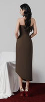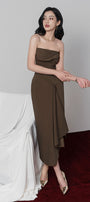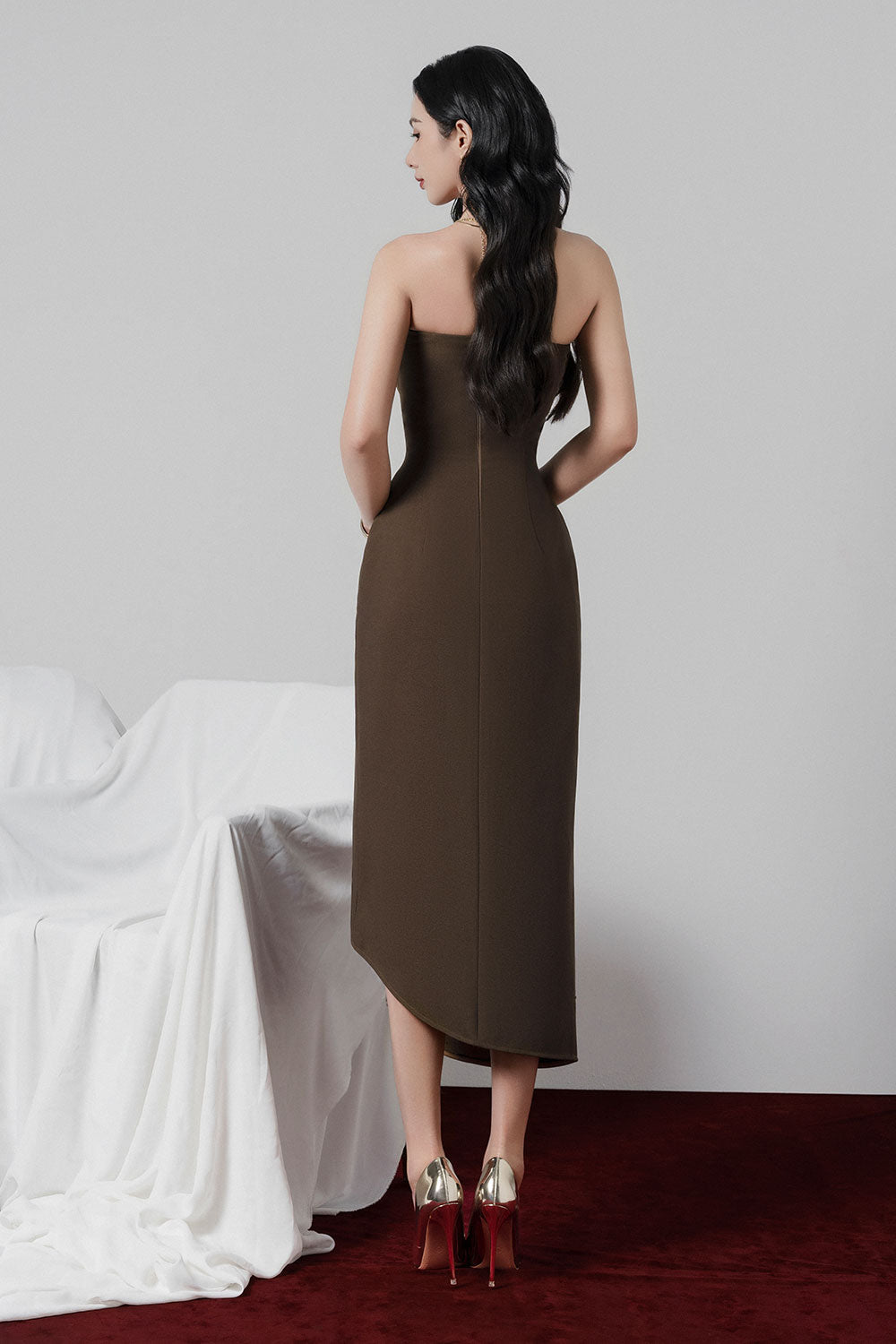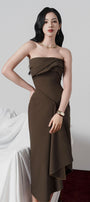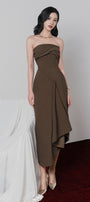 Introducing the dress - the perfect blend of elegance and modern style. With its unique asymmetrical design and strapless neckline, this dress is sure to make a statement at any event. Expertly crafted with precision and attention to detail, this dress is a must-have for any fashion-forward individual.