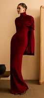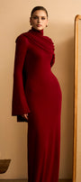 This sheath maxi dress features a classic round neck and elegant cape sleeves, embodying refined sophistication. Its timeless silhouette creates a flattering shape, perfect for special occasions, evening events, or formal gatherings.