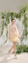 The mini skirt features a flattering A-line silhouette and multiple layers of soft tulle, resulting in a flowy and ethereal look. Designed for effortless elegance, this skirt offers graceful movement and a lightweight feel, perfect for adding a touch of sophistication to any ensemble.