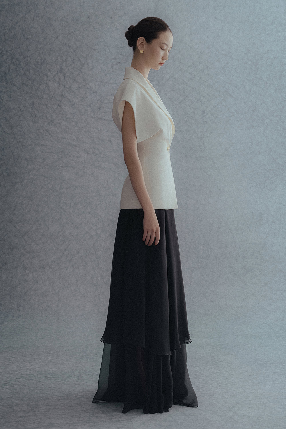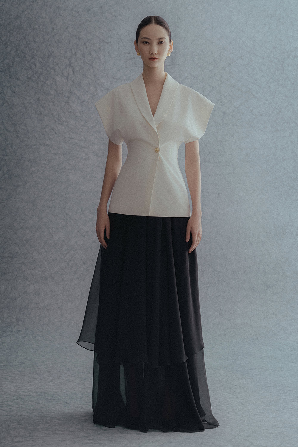 Expertly crafted from high-quality twill fabric, the blazer is designed to accentuate your figure with its hourglass silhouette and elegant butterfly sleeves. Elevate your wardrobe with this stylish and versatile blazer, perfect for both professional and social occasions.