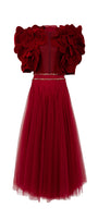 Special Features: Layered petal-like details (Coat), Flowing and layered on bottom of dress, Stones create circles around waist
