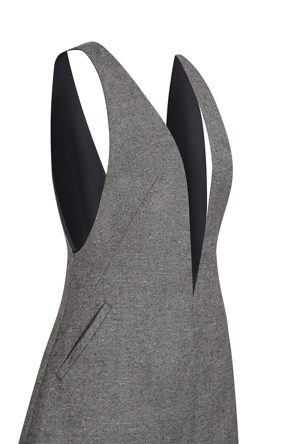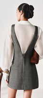 Its flattering A-line silhouette and plunging neckline exude sophistication and elegance. Made with high-quality tweed fabric, this dress is both durable and fashionable. Perfect for any occasion.