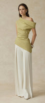 These cotton twill pants feature straight side pleats, offering a sophisticated and stylish touch to your wardrobe. The pleats also provide a flattering and tailored fit, making these floor length pants a versatile and chic choice for any occasion. Add them to your collection for a polished and professional look.