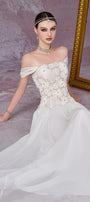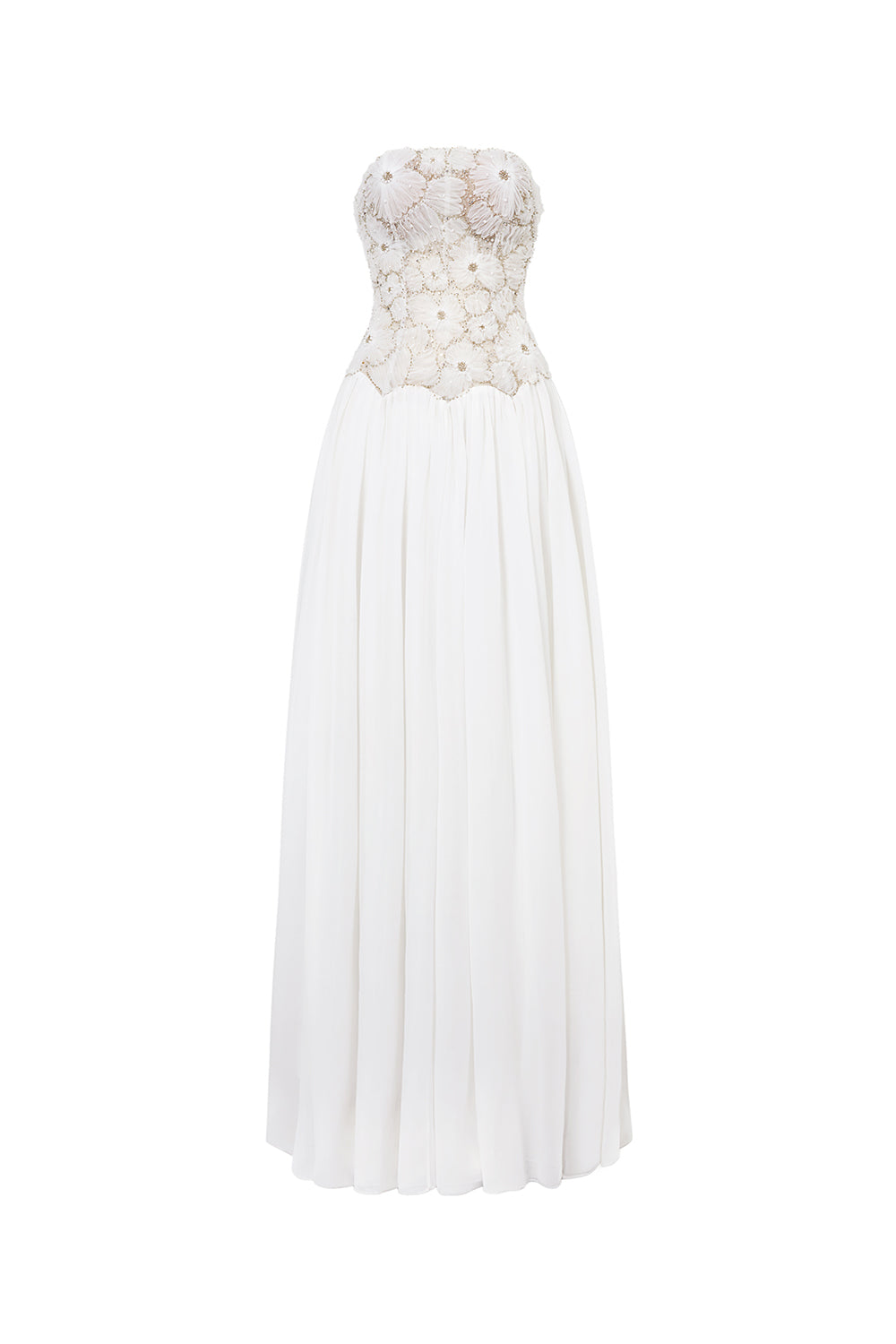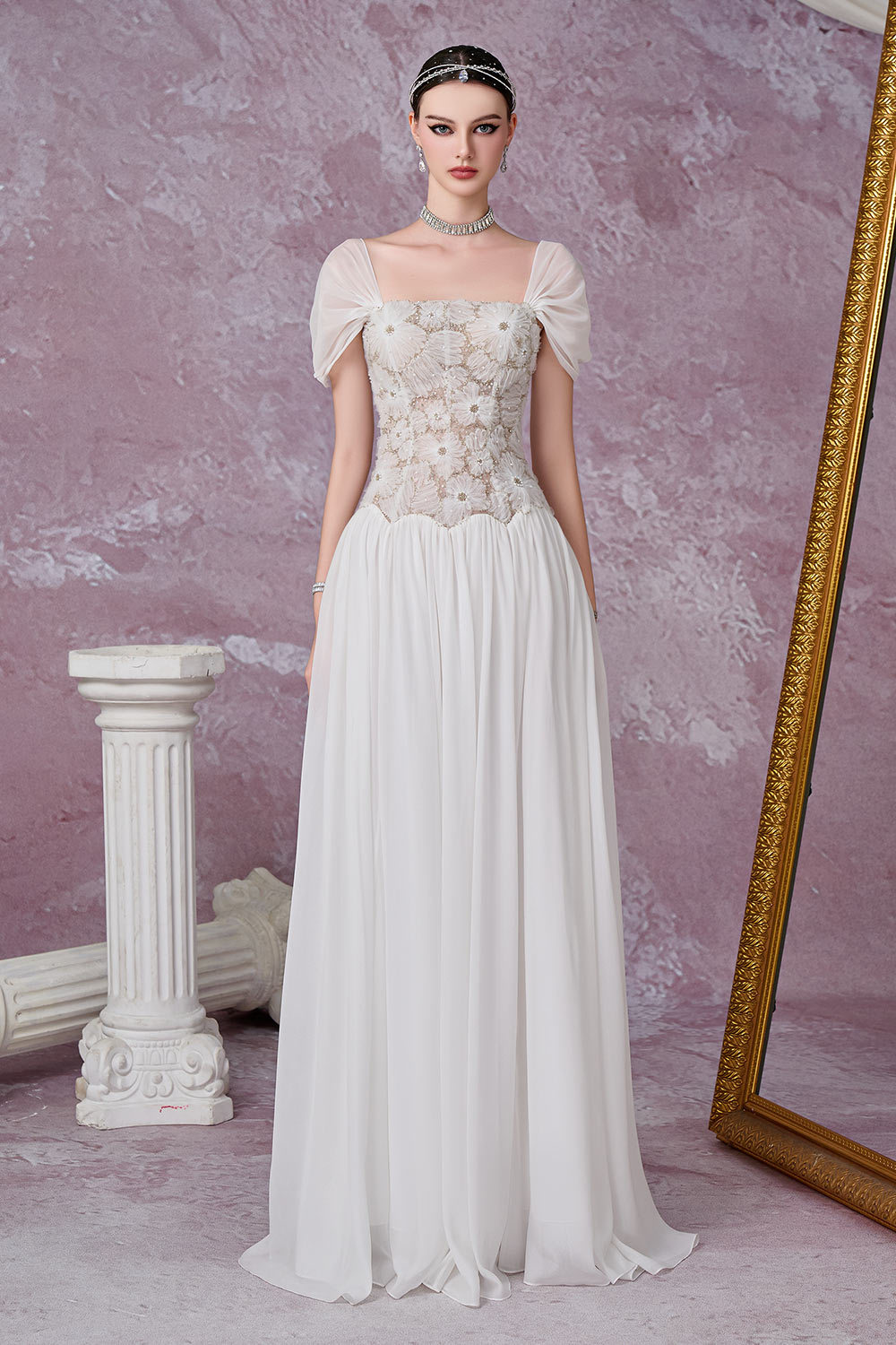 نمط الدانتيل الزهري مع الترتر, خصر مشدود مع عظم, جزء علوي بحاشية سكالوب, أكمام قابلة للفصل