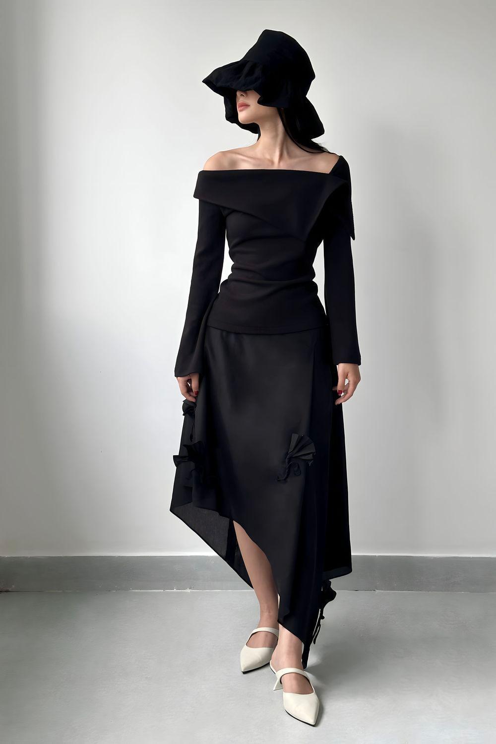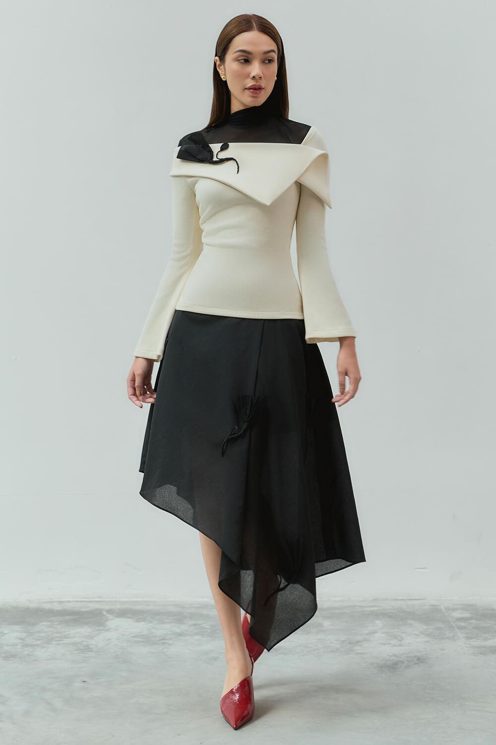 Nhan Asymmetric High Waist Cotton Lawn Midi Skirt