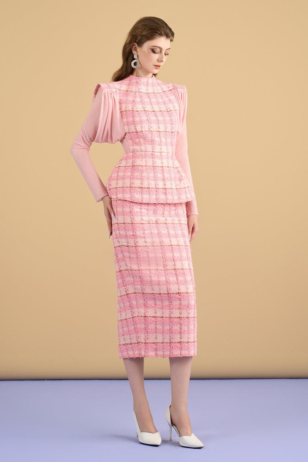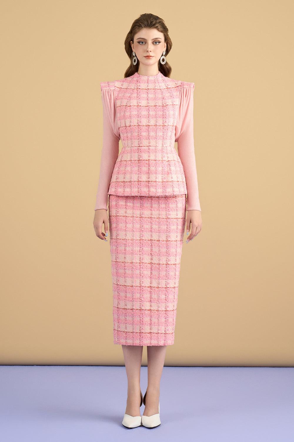 Remy Pencil Back Slit Tweed Calf Length Skirt