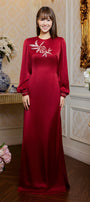 Rose Sheath Bouffant Sleeved Silk Floor Length Ao Dai