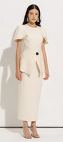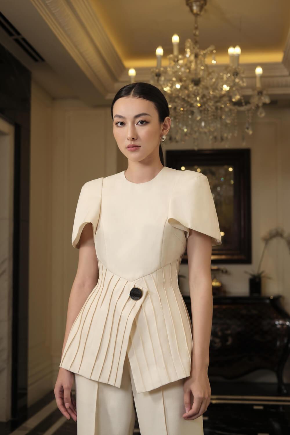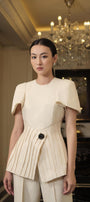 يظهر القميص بشكل مثير للإعجاب مع تفاصيل طيات متقاطعة خلقت لمسة ملفتة للنظر للتصميم العام. ساعدت المواد الحريرية المختارة بعناية على تعزيز أناقة المنتج وإضفاء شعور بالاسترخاء على مرتديه.