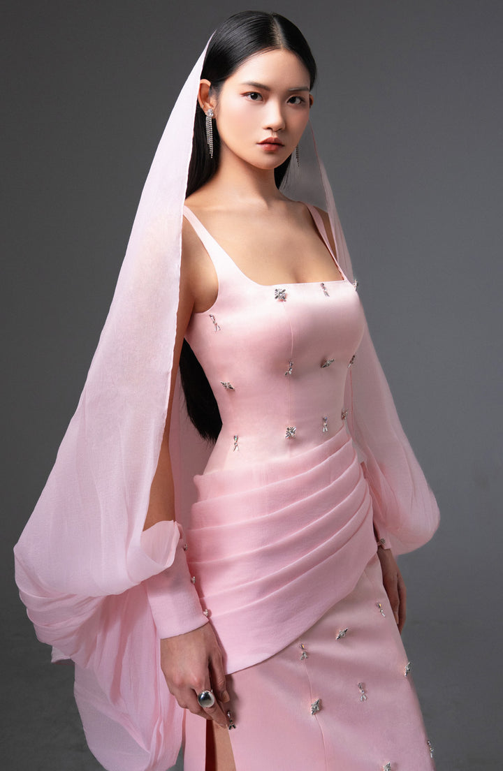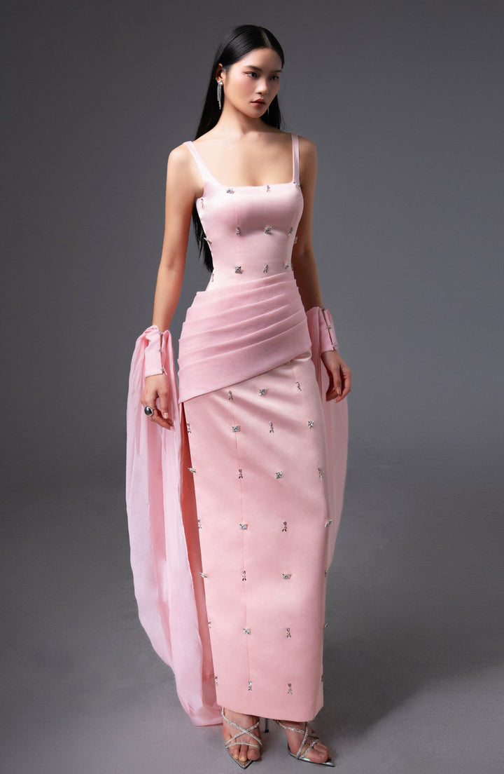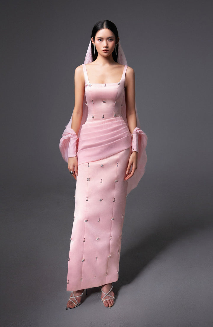 | Special Features | فستان بحزامين مع نقوش مرصعة, شال شفاف بغطاء رأس وأكمام بأساور, فتحة جانبية عالية |