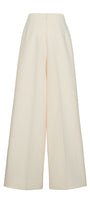 The pants feature a sophisticated floor-length cut with wide legs designed for ease and elegance. A distinctive ribbed line runs down the center, adding subtle texture and structure to the silhouette. Crafted from smooth crepe fabric, they provide a refined drape that complements professional or upscale casual looks with impeccable style.